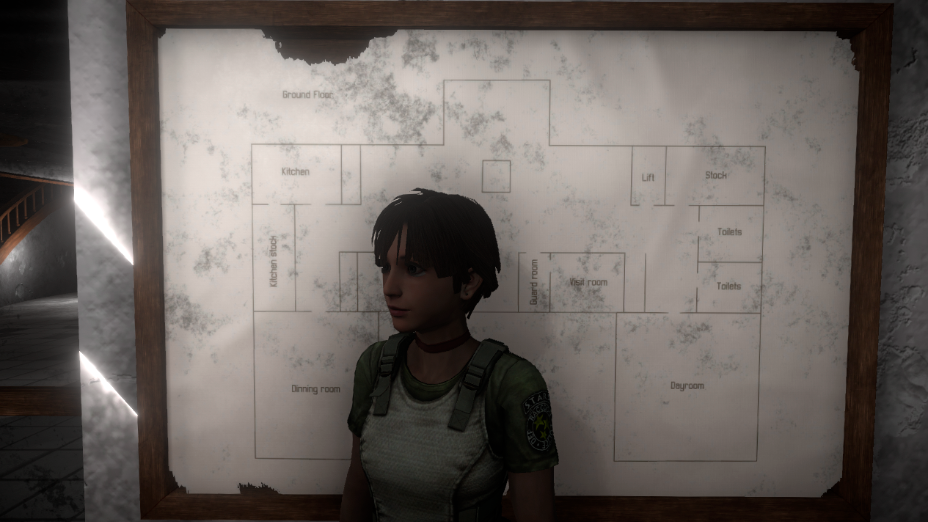 Foram semanas de estudo e testes. Tentei com a Rebecca original do Rebirth, depois com a Remaster do mesmo jogo e nada. Puxei a do Zero do Gamecube e ficou quase perfeita, mas as texturas estavam em qualidade baixa [padrão da época: lindas, mas sem muitos detalhes] até que, finalmente, consegui setar a Rebecca HD Remaster do Resident Evil Zero. Além de ter ficado linda demais, ela é a original e é a que se despede do Billy. Então, nada melhor do que utilizar este modelo para nosso jogo, que começa naquele exato momento.